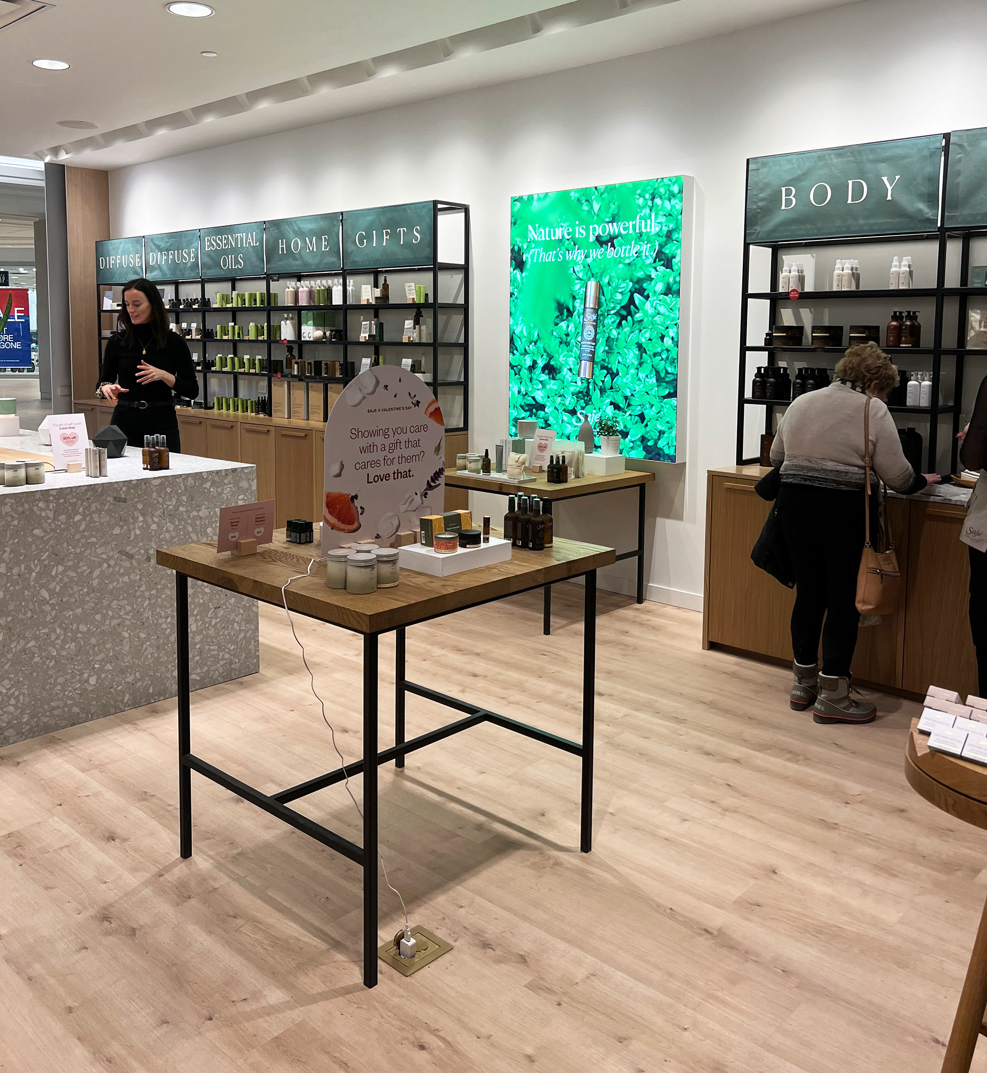 STORE DESIGN & PRODUCT VISUAL MERCHANDISING | Wellness Retail - Store design, project management and visual merchandising for Hillcrest store renovation. - New Design Elements: Front of Store, Windows, Light Box and Blend Bar.